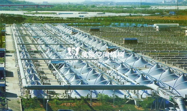 依據生活及城市污水處理的特點,在城市污水處理廠加蓋除臭中,大型池體的封閉體系選擇尤為關鍵,鋼支持反吊膜的技術充分發揮了結構骨架與膜材料的完美結合。專門研發并生產符合該領域的污水池覆蓋膜結構,在具體工程中已大量使用,其安裝快捷、檢驗方便、形式靈活多樣、自潔性好、經濟效果顯著。