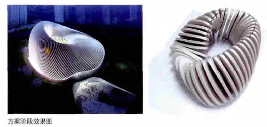 計算機生形可以幫助設計師將設計意向以代碼的形式傳遞給軟件,再由軟件轉化成設計圖形。計算機圖形學包括了兩個重要的方面,一是幾何關系,二是表現(xiàn)效果。在鳳凰中心的設計中,由莫比烏斯環(huán)的幾何關系發(fā)展成實實在在的張拉膜結構建筑結構關系,需要借助強大的數(shù)字技術。