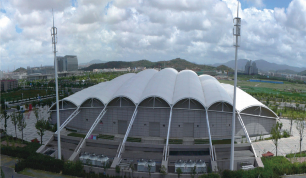 屋面膜結構中所使用的膜材料每平方一公斤左右,由于自重輕,加上鋼索、鋼結構高強度材料的采用,與受力體系簡潔合理——力大部分以軸力傳遞,故使屋面膜結構適合跨越大空間而形成開闊的無柱大跨度結構體系。
