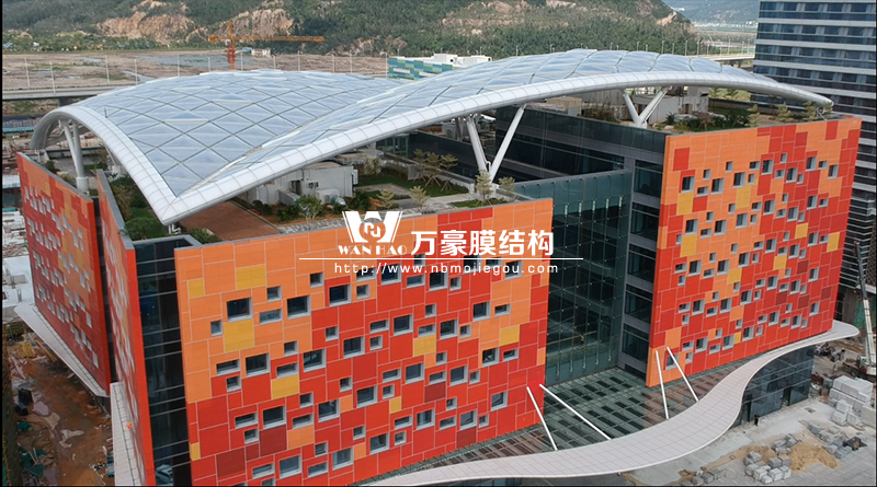 該園區(qū)的膜結(jié)構(gòu)屋頂由寧波萬(wàn)豪空間結(jié)構(gòu)制作,大家可以欣賞一下它的風(fēng)采。