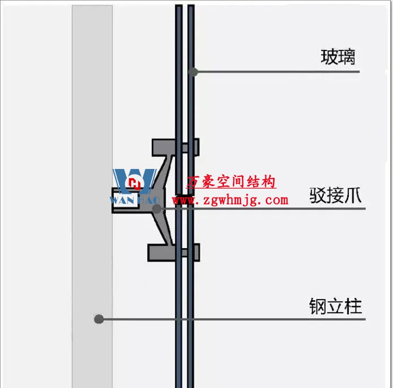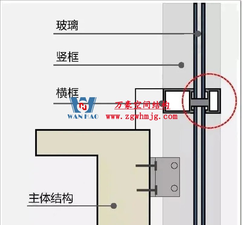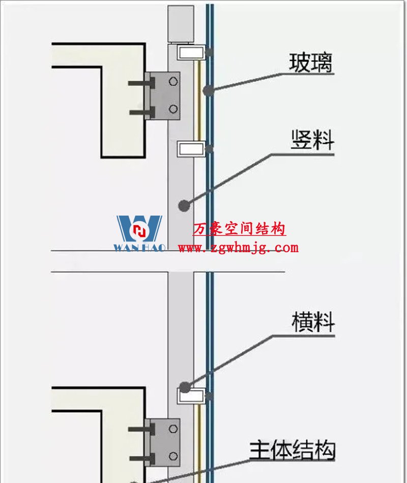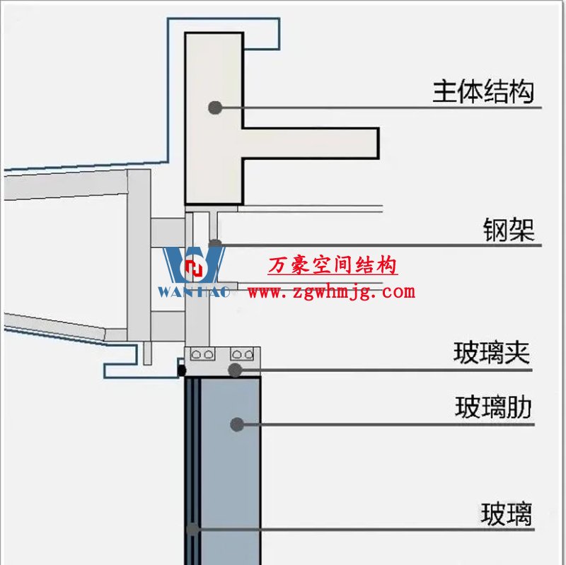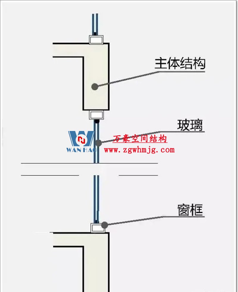 幕墻是通過錨固支座,以點傳遞的方式將自重和所受荷載傳給主體結(jié)構(gòu)。
