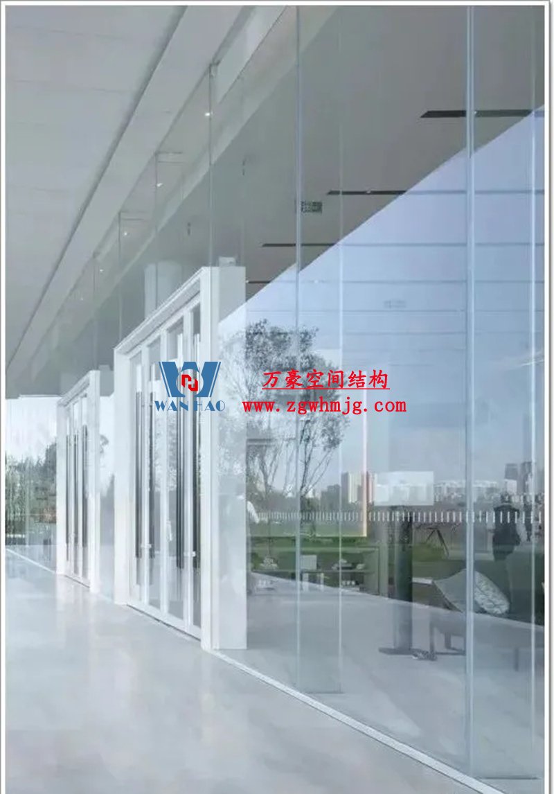 全玻璃幕墻的美觀性和整體性最高,是通過玻璃肋作為支承結(jié)構(gòu),實現(xiàn)全立面玻璃結(jié)構(gòu)。相比于明框、隱框,全玻璃的價格高一些,在1200元/㎡。