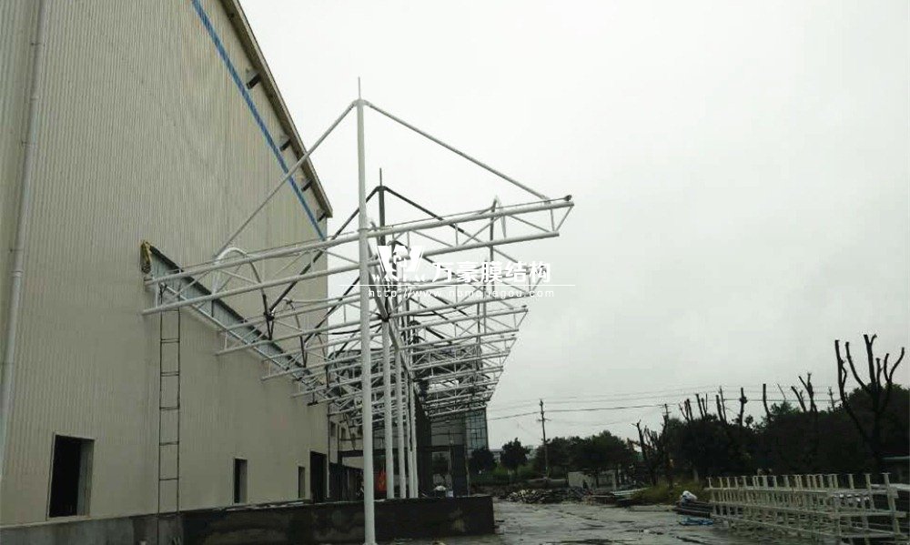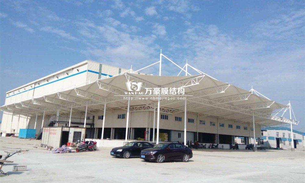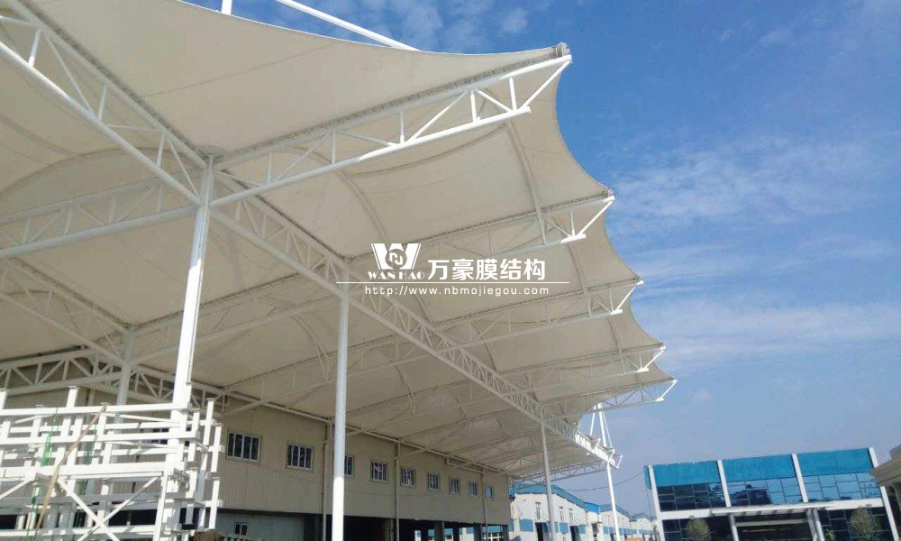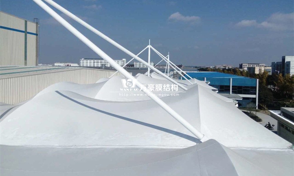 嘉善索菲亞家居膜結構工程就位于嘉善縣的嘉善經濟開發區隆全路上。整個項目總用鋼量達到了約120噸,膜布投影面積3000㎡。