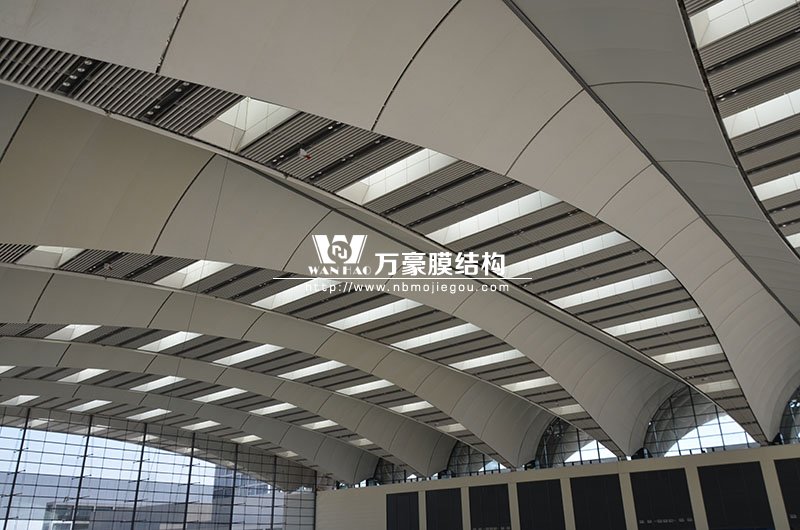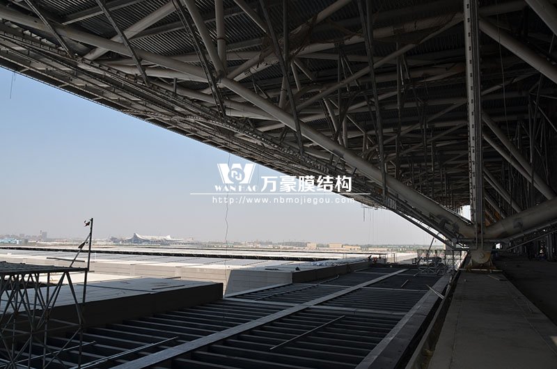工程,由寧波萬豪空間結構工程有限公司承建,現場測量、深化設計、制作及安裝由寧波萬豪全權負責。該工程用鋼量1000多噸,PTFE室內屋面膜結構展開面積17000多平方米,PTFE室外屋面膜結構展開面積20000多平方米。