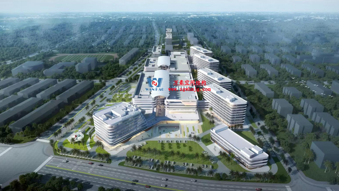 海南醫(yī)學(xué)院第一附屬醫(yī)院江東新院區(qū)膜結(jié)構(gòu)工程,該項(xiàng)目用鋼量約360噸,PTFE膜結(jié)構(gòu)展開(kāi)面積約4500平米。