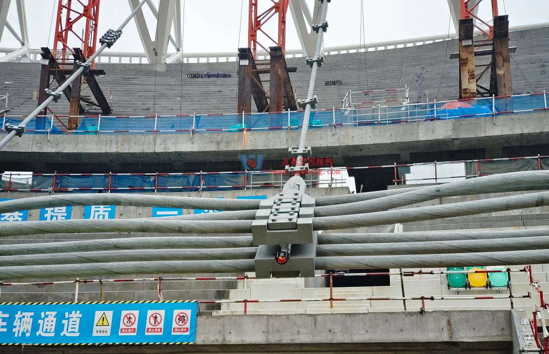 該項目采用車輻式索膜結構體系,其中膜結構由屋面內環ETFE氣枕結構、屋面外環PTFE膜結構及立面PTFE膜結構組成。 其中,屋面ETFE氣枕由萬豪空間結構深化設計及安裝,ETFE氣枕投影面積20000平方米左右。