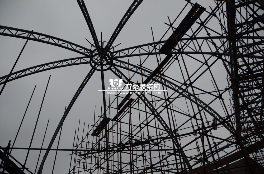 余姚天華村文化廣場鋼結構工程,本工程頂棚采用鋼結構制作。同時用膜結構蓋頂,美觀大氣。