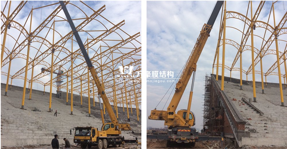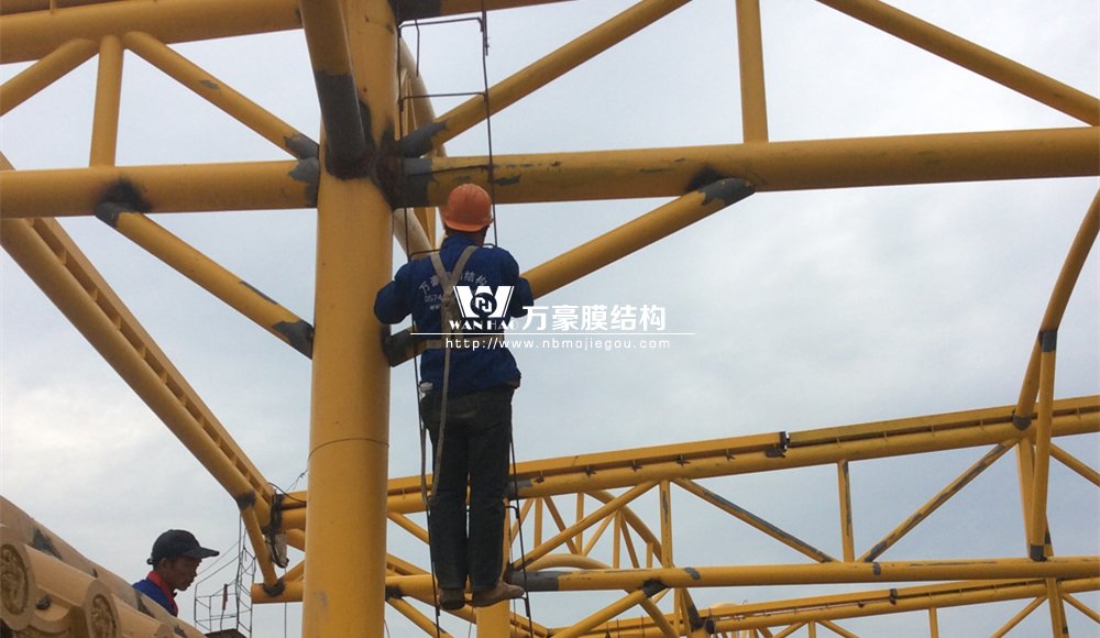 橫店影視城膜結構體育場項目,項目近萬平米,其中鋼結構500多噸,鋼結構部分現已接近尾聲。感謝現場50多位員工及管理團隊,在寒冷的天氣中,堅守自己的崗位,兢兢業業,把工作做到了極致,感謝他們的付出!