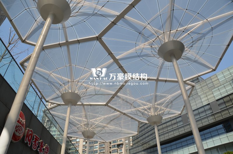 最新寧波商業(yè)廣場(chǎng)ETFE膜結(jié)構(gòu)項(xiàng)目,本項(xiàng)目采用先進(jìn)的ETFE透明膜材,漂亮的水立方外墻就是采用這種膜材。在商業(yè)廣場(chǎng)上采用ETFE膜能讓建筑更加美觀,同時(shí)ETFE膜使用壽命長(zhǎng),自潔性好,雨水就能沖洗干凈,使得越來越多的商業(yè)廣場(chǎng)加蓋使用膜結(jié)構(gòu)。