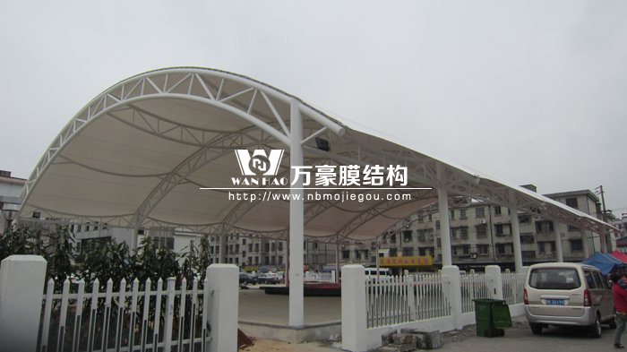 本工程位于寧波市鎮海區駱駝街道,業主單位為鎮海區駱駝街道辦事處,工程于3月17日正式完工驗收。因膜結構藝術性、自潔性、大跨度、經濟性、施工快等特點,越來越多的建筑使用了膜結構,本次工程公司設計部先設計好,然后在公司的工廠把鋼結構和膜材加工好,最后只需在工地進行安裝,所以膜結構的施工時間會比傳統工程要短。相信使用后一定會給當地居民帶來更便利的生活。