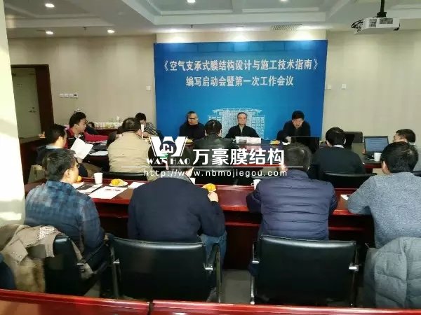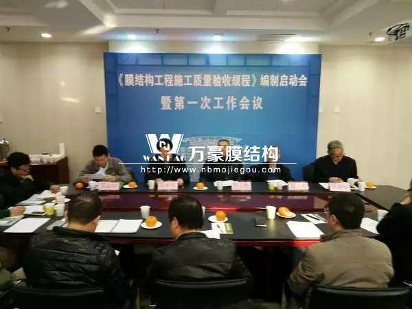 2016年12月17、18日,由北京工業大學建筑工程學院聯合中國鋼結構協會空間結構分會主持編制的《膜結構施工質量驗收規程》和《空氣支承膜結構設計與施工技術指南》編制啟動會順利召開。來自中國建筑科學研究院、同濟大學、哈爾濱工業大學、上海交通大學、北京交通大學、北京市建筑設計研究院、上海現代建筑設計(集團)有限公司以及膜結構會員單位的30多位專家出席了啟動會和第一次工作會議。(我司也榮幸的出席)