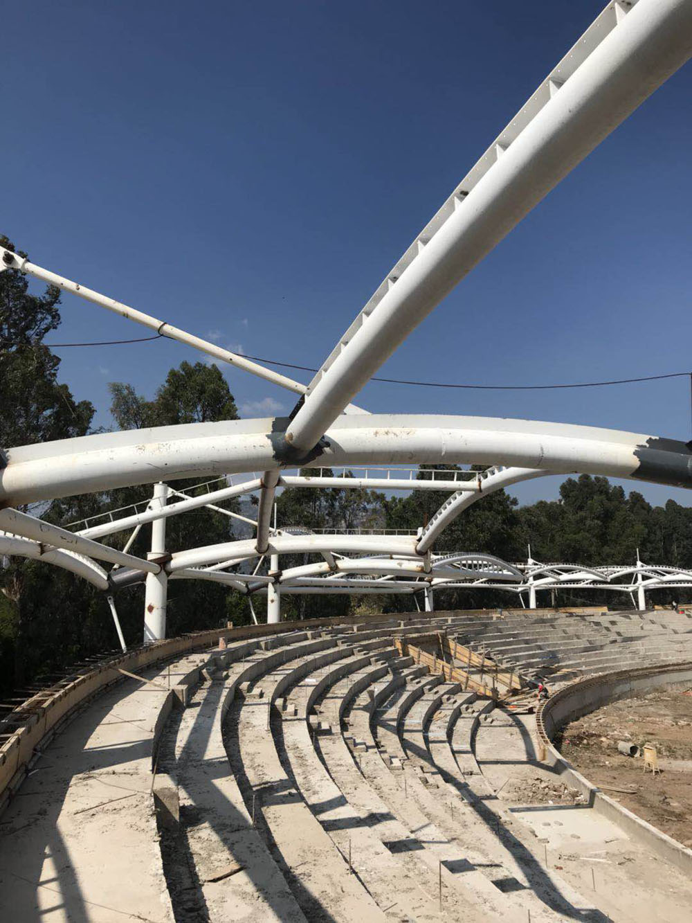 正因如此,客戶對施工的建造要求及其嚴格,經過再三選擇,最終決定由我們寧波萬豪空間結構工程有限公司來承建。萬豪不辱使命,經過緊張施工,鋼結構已完成并經初步驗收,膜結構裝備開始安裝,得到了客戶高度的贊賞。