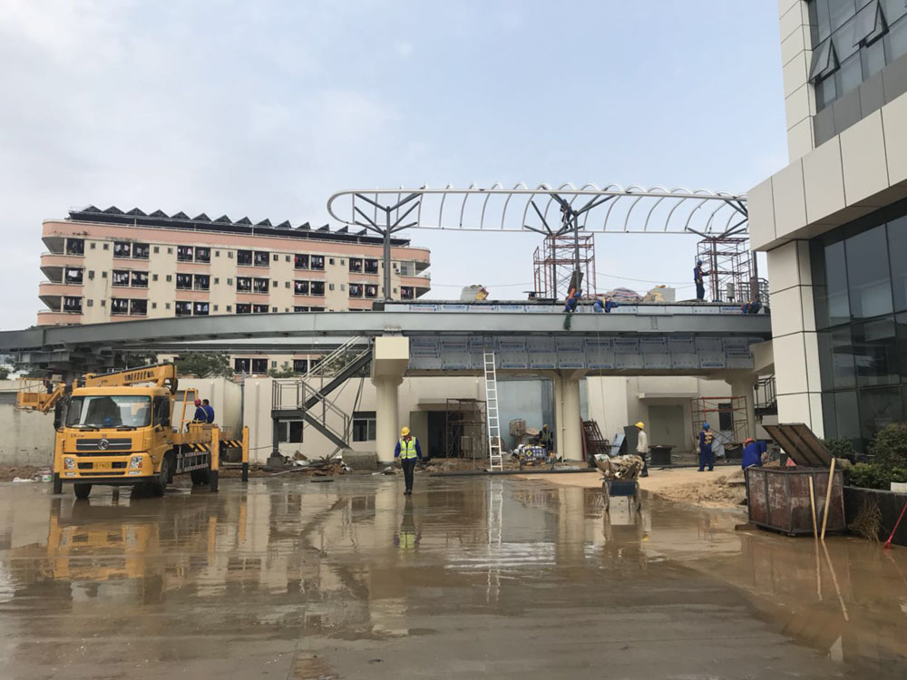 云巴園區(qū)試驗(yàn)示范線工程由寧波萬(wàn)豪空間結(jié)構(gòu)工程有限公司深化、制作及安裝,工程質(zhì)量?jī)?yōu)質(zhì),該工程造型比較新穎,與創(chuàng)新云軌相融為人員集散中心的云軌站站臺(tái),相比地鐵站更具美觀性!云巴園區(qū)試驗(yàn)示范線工程-四角站,遮蓋材質(zhì)選用最為優(yōu)質(zhì)的ETFE膜材(日本旭硝子),這種膜材料的最大亮點(diǎn)是:透光性加上防紫外線的特性保證了其使用功能和美觀性!鋼構(gòu)則選用了起拱和各種大小圓弧相融合。寧波萬(wàn)豪空間結(jié)構(gòu)工程有限公司對(duì)加工精度和安裝精度做出了高標(biāo)準(zhǔn)的典范!