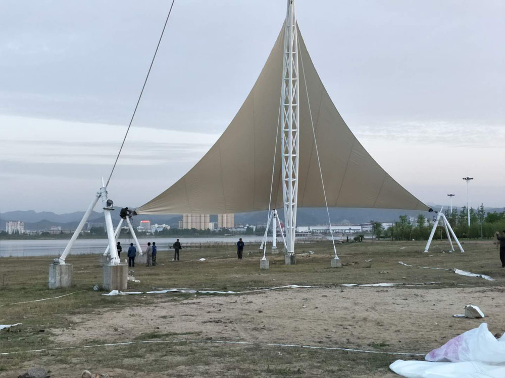 高橋灣現代產業園單飛燕、雙飛燕景觀膜結構工程地址位于安徽省霍山縣高橋灣現代產業園。此次工程由寧波萬豪空間結構工程有限公司全權負責,項目已近尾聲,已經開始裝膜。