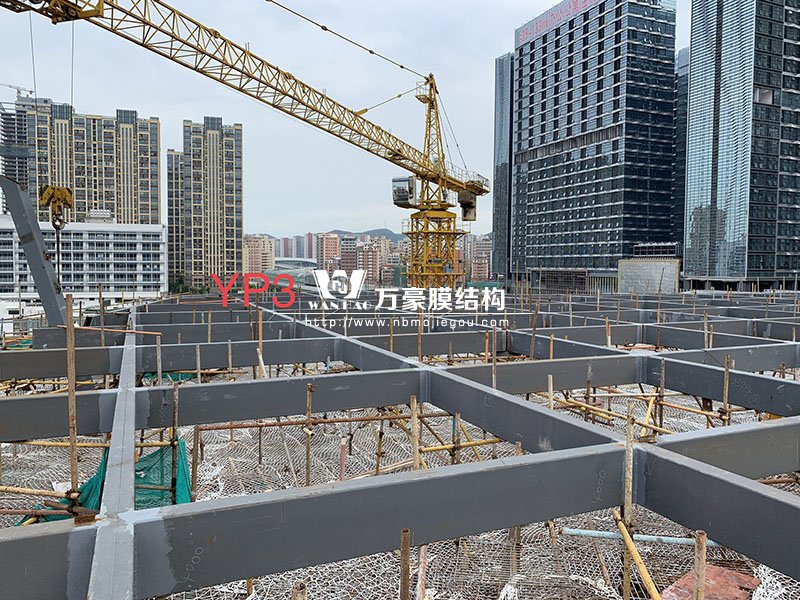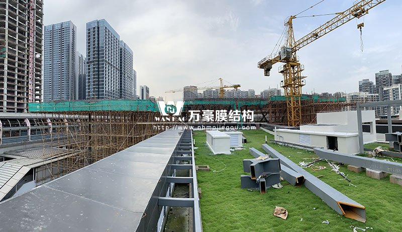 此項目位于廣東省深圳市龍華區,膜結構展開面積5000平米,用鋼量300噸。