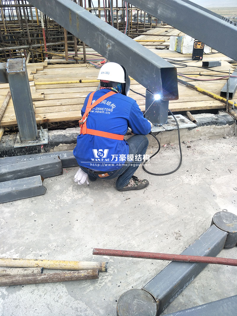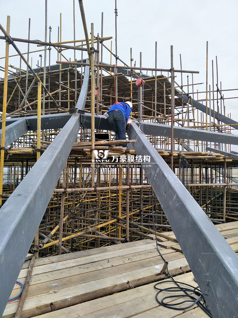 該項目主要分為兩個部分,分別是綜合辦公樓鋼膜結(jié)構(gòu)項目和觀光塔鋼膜結(jié)構(gòu)項目,總用鋼量500噸,膜結(jié)構(gòu)展開面積4000平米。