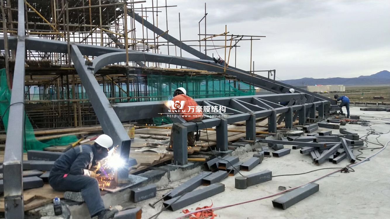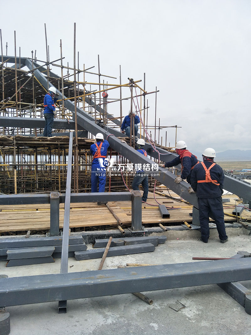 茶卡鹽湖景區(qū)綜合辦公樓及觀光塔鋼膜結(jié)構(gòu)項目施工中