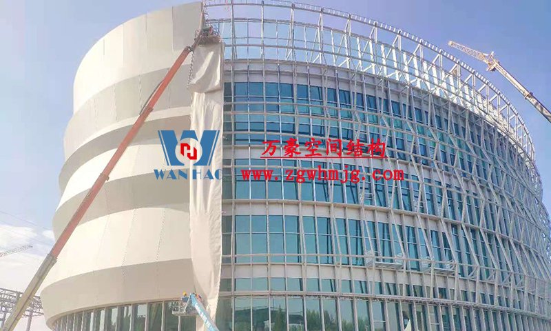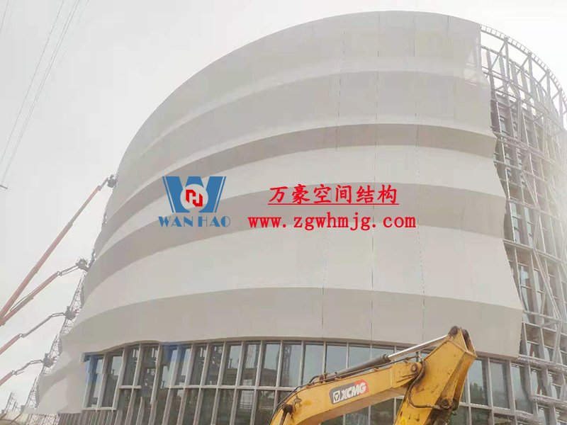 本工程項目為原有建筑物外立面網格膜裝飾及其支撐鋼結構體系安裝工程。外立面膜裝飾面面積14000㎡,用鋼量600噸。