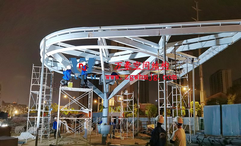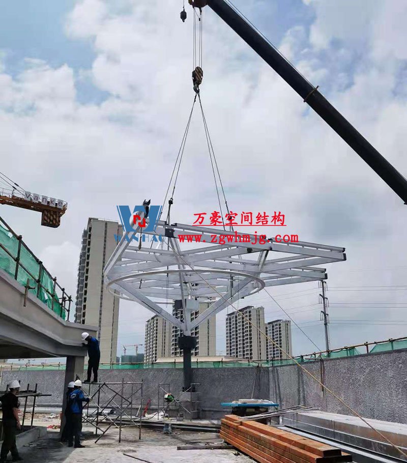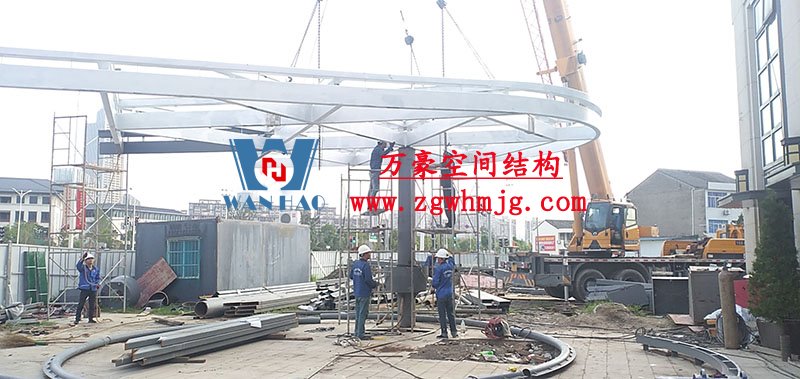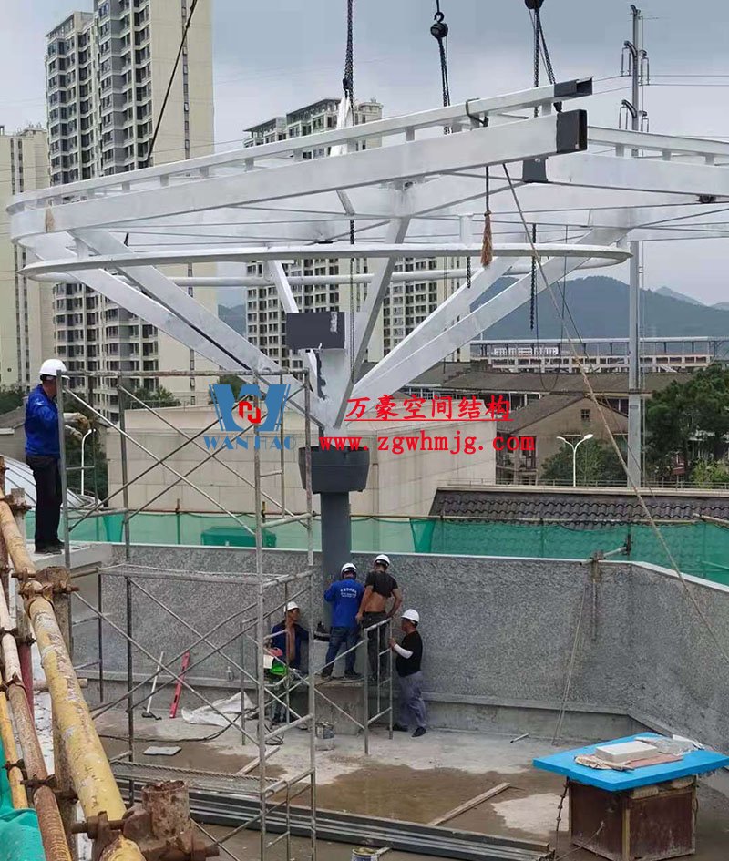 臺州大板橋ETFE氣枕天幕項目鋼結(jié)構(gòu)開始吊裝
