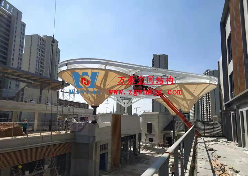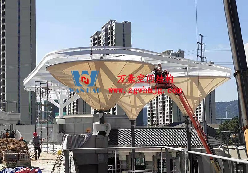 臺州大板橋ETFE氣枕天幕項目膜結構安裝中