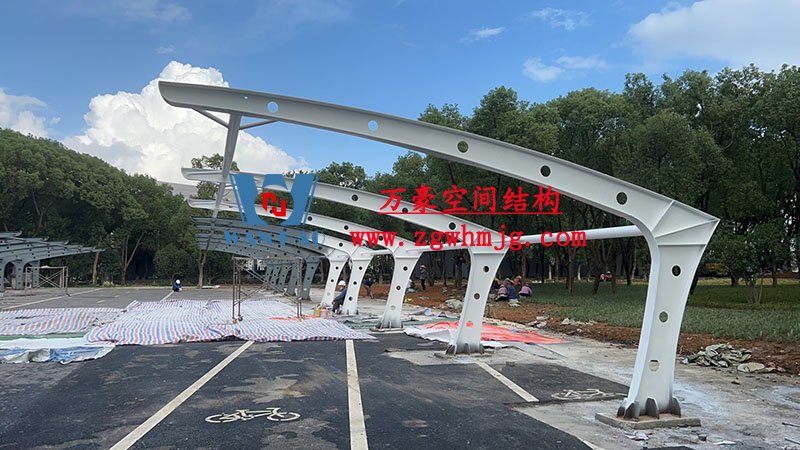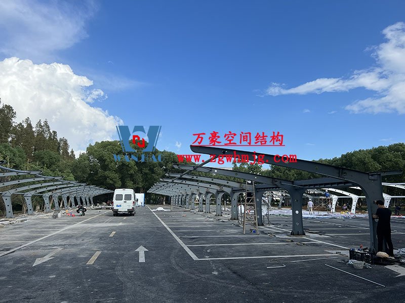 寧波大學北大門停車場遮陽棚改造提升工程位于浙江省寧波市,由寧波萬豪空間結構工程有限公司承建。