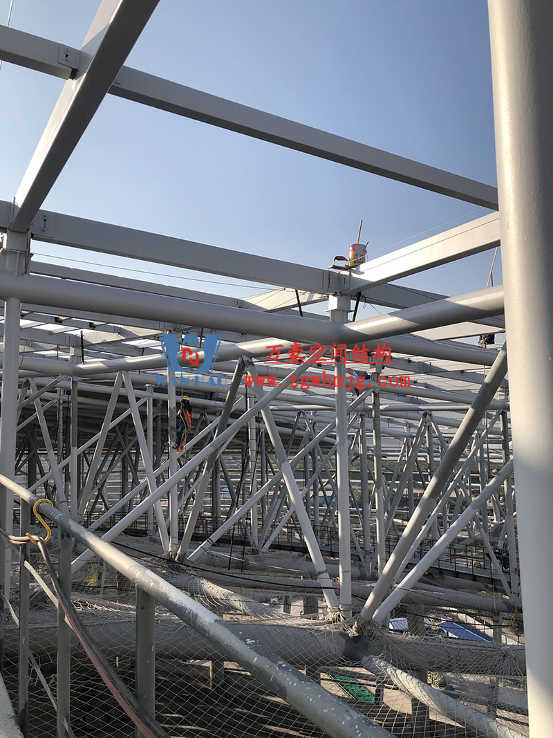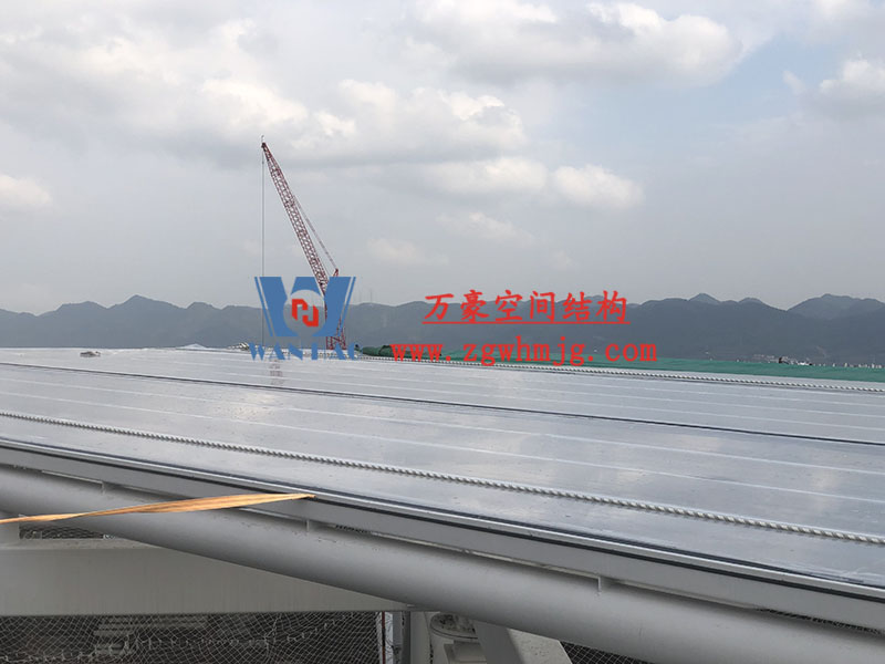 目前,項目內環鋼結構全部完成,屋面鋼結構全部完成,立面鋼結構完成60%,屋面膜結構完成90%,內環膜結構完成25%。