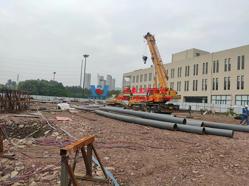 目前,項目預埋件施工完成,材料進場,現場開始拼裝,涂刷油漆。