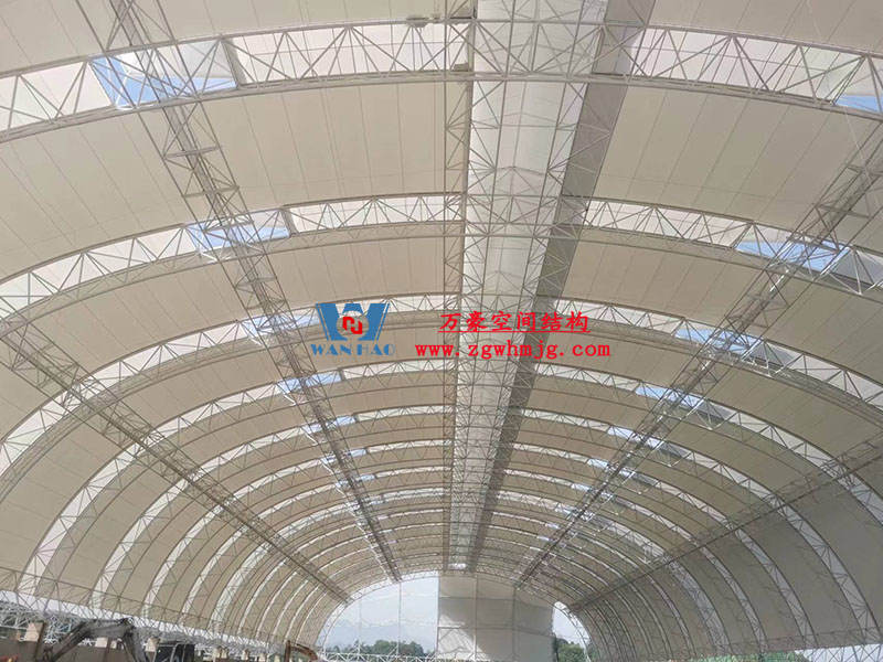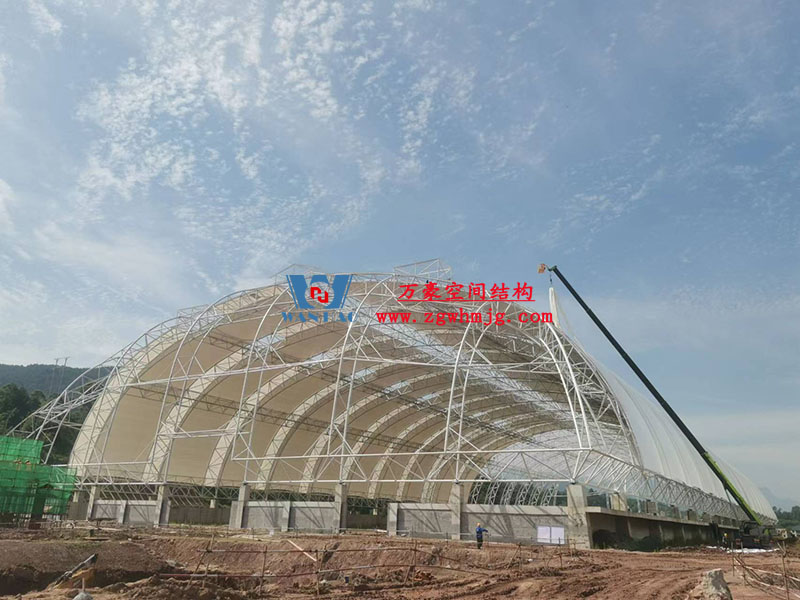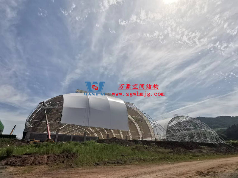四川高興煤炭儲備基地建設項目位于四川省華鎣市高興火車站以南高興物流區,該項目膜結構展開面積12萬平米,由寧波萬豪空間結構工程有限公司承建。