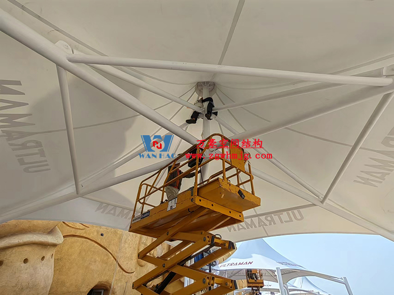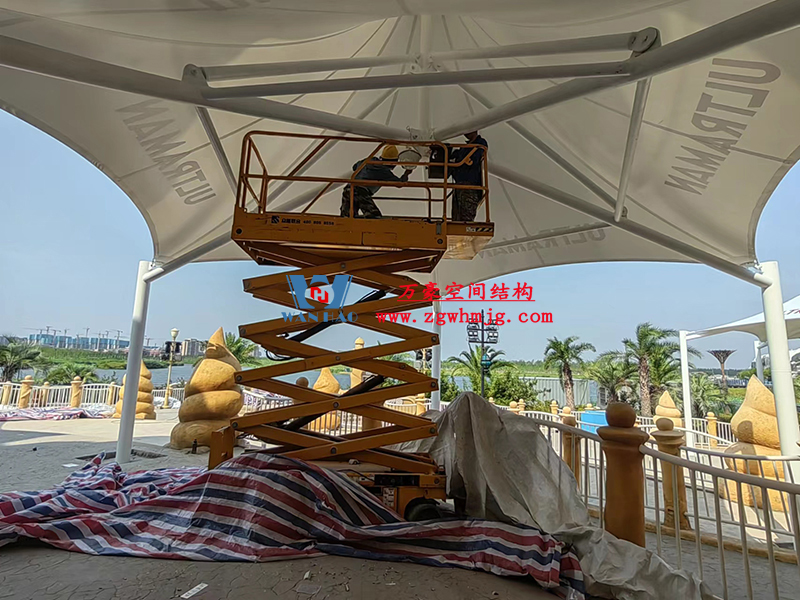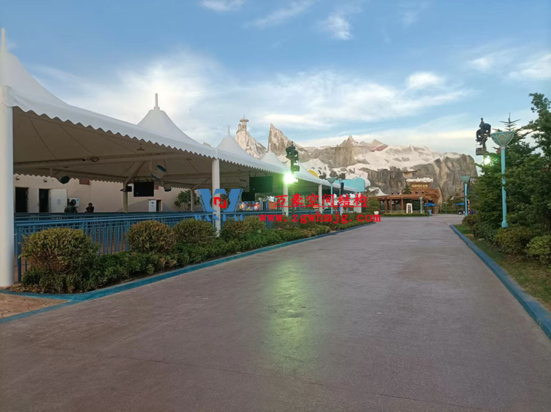 上海海昌海洋公園鋼膜結構工程項目位于上海市浦東新區南匯新城銀飛路166號園區內,該項目分為海昌海洋公園沙塔餐廳室外鋼膜結構、虎鯨劇場排隊區鋼膜結構兩部分,膜結構展開面積1300平米,由寧波萬豪空間結構工程有限公司承建。