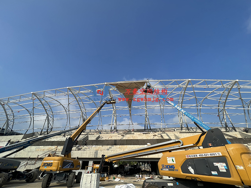 龍泉市體育場鋼膜結構工程膜結構安裝中