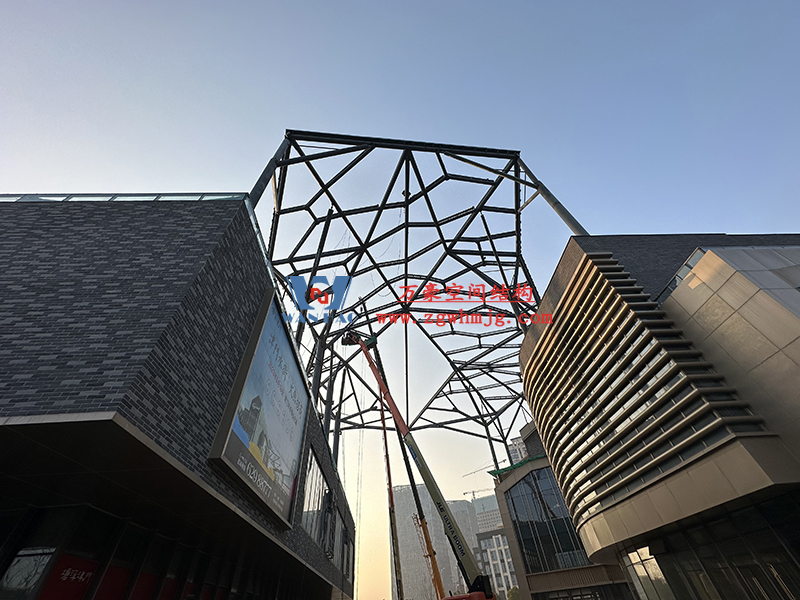 您所在的位置: 首頁(yè)>>新聞動(dòng)態(tài)>>萬(wàn)豪資訊合肥文一塘溪津門天幕鋼結(jié)構(gòu)及ETFE氣枕膜工程鋼結(jié)構(gòu)吊裝中